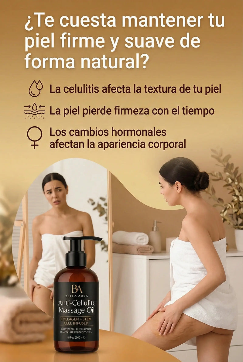 Las clientas eligen Bella Aura porque buscan un aceite corporal natural que ayude a mejorar la apariencia de la celulitis y la piel con uso constante.