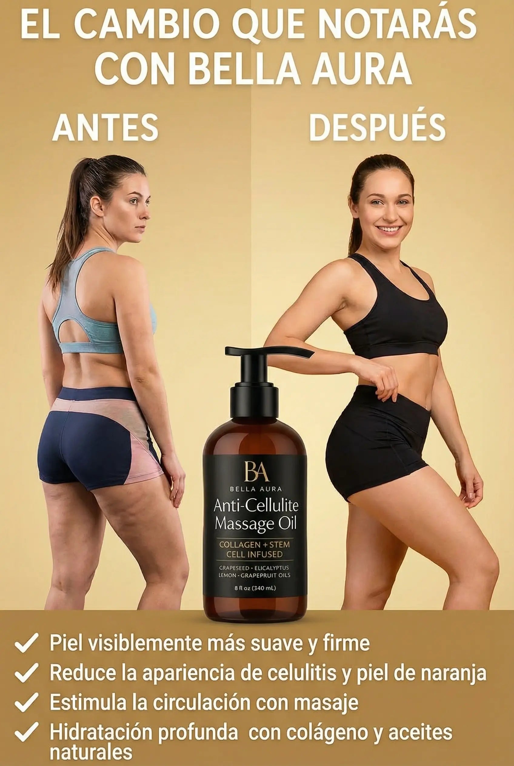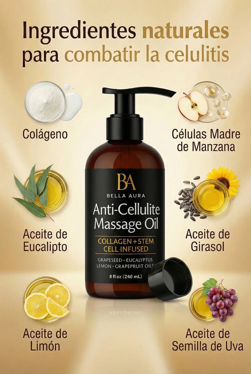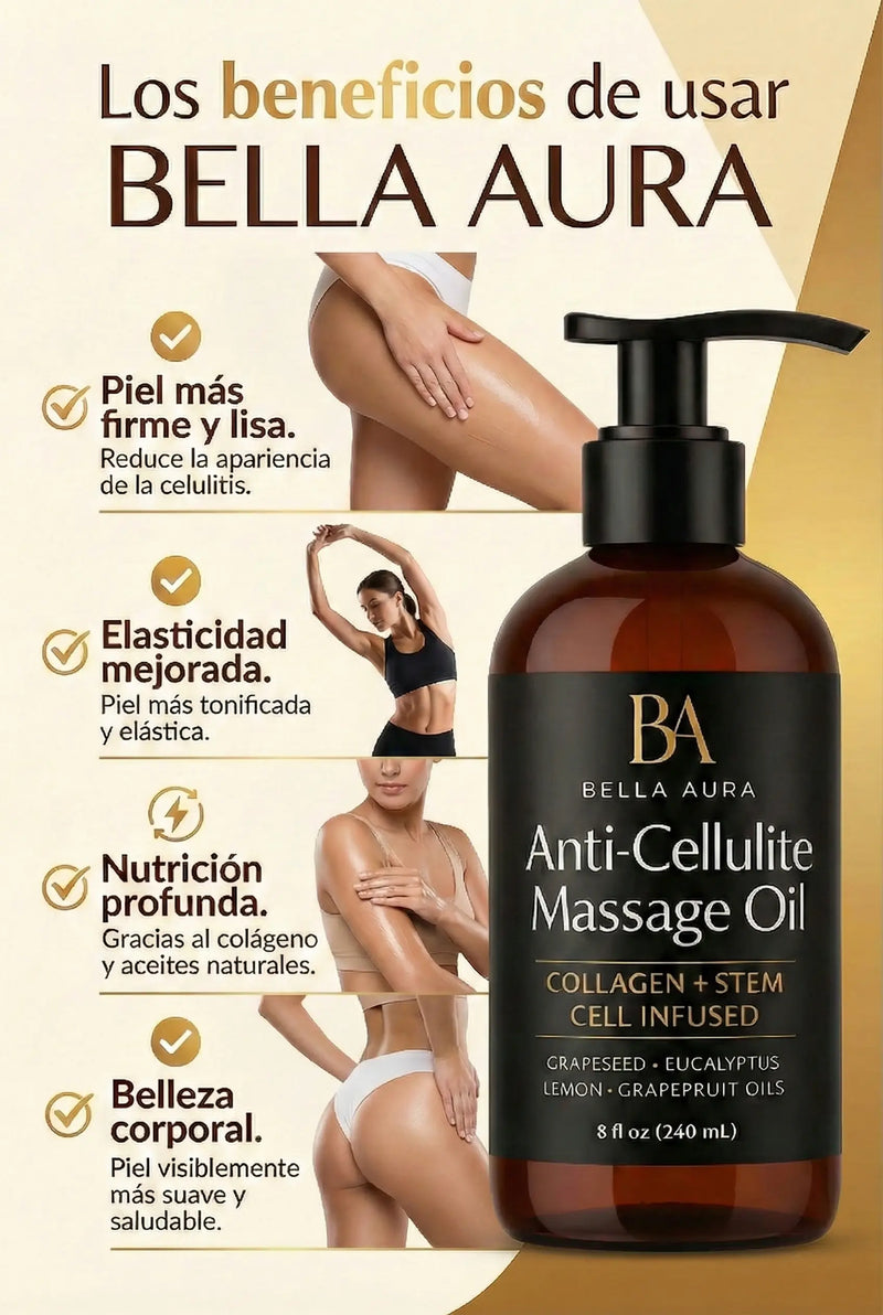 Aceite Anticelulitis Bella Aura - Reduce visiblemente la Celulitis y Estrias(240 ml)