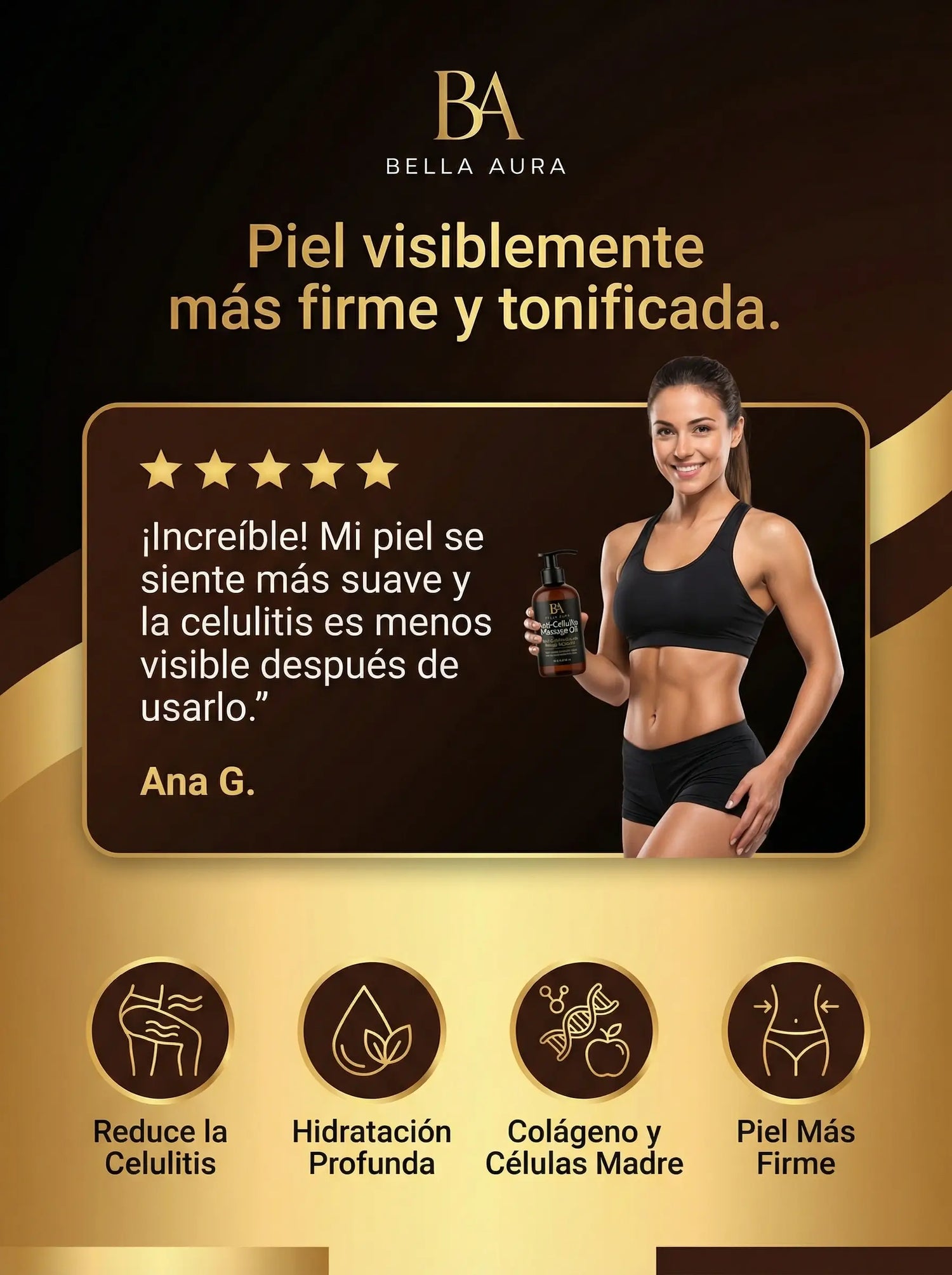 Eligen el aceite anticelulitis Bella Aura por su calidad, facilidad de uso y resultados visibles con constancia.